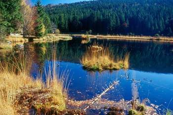 Eine Besonderheit im Naturpark Oberer Bayerischer Wald ist der kleine Arbersee. Im Wasser des Sees spiegelt sich ein verwunschen wirkender Nadelwald, der durchaus Erinnerungen an die Wildnis Nordamerikas wecken kann. Charakteristisch für den kleinen Arbersee ist das Naturphänomen der Schwingrasen, welche am Ufer aufsitzen und gegen die Wasserfläche vorwachsen. Einige dieser Moorfilze haben sich vom Ufer losgelöst und treiben nun als schwimmende Inseln auf dem See. Zu empfehlen sind der ca. 30 Minuten dauernde Rundwanderweg um den See und eine abschließende Einkehr ins „Seehäusl“, das mit leckeren Brotzeiten und Kuchen aufwartet.