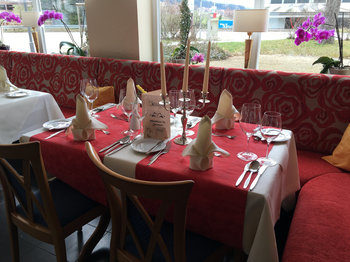 Am Ostersamstag gab es für unsere Gäste, die das Arrangement "Ostern Deluxe" gebucht hatten, im Restaurant "Charivari" ein exquisites 5-Gang-Menü mit Aperitif bei Kerzenschein.