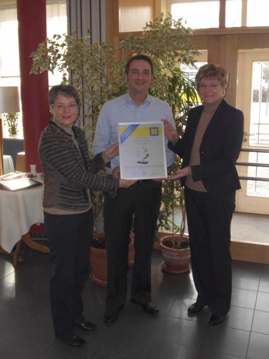 Der "Primo 2012" weist uns als eine der 100 besten Neckermann-Urlaubshotels aus. Benjamin Hinkel von der Agentur Montana Touristic überreichte die entsprechende Urkunde bei einem Besuch hier in Arrach an unsere beiden Geschäftsführerinnen Ines Schultheis und Christiane Schwarz.